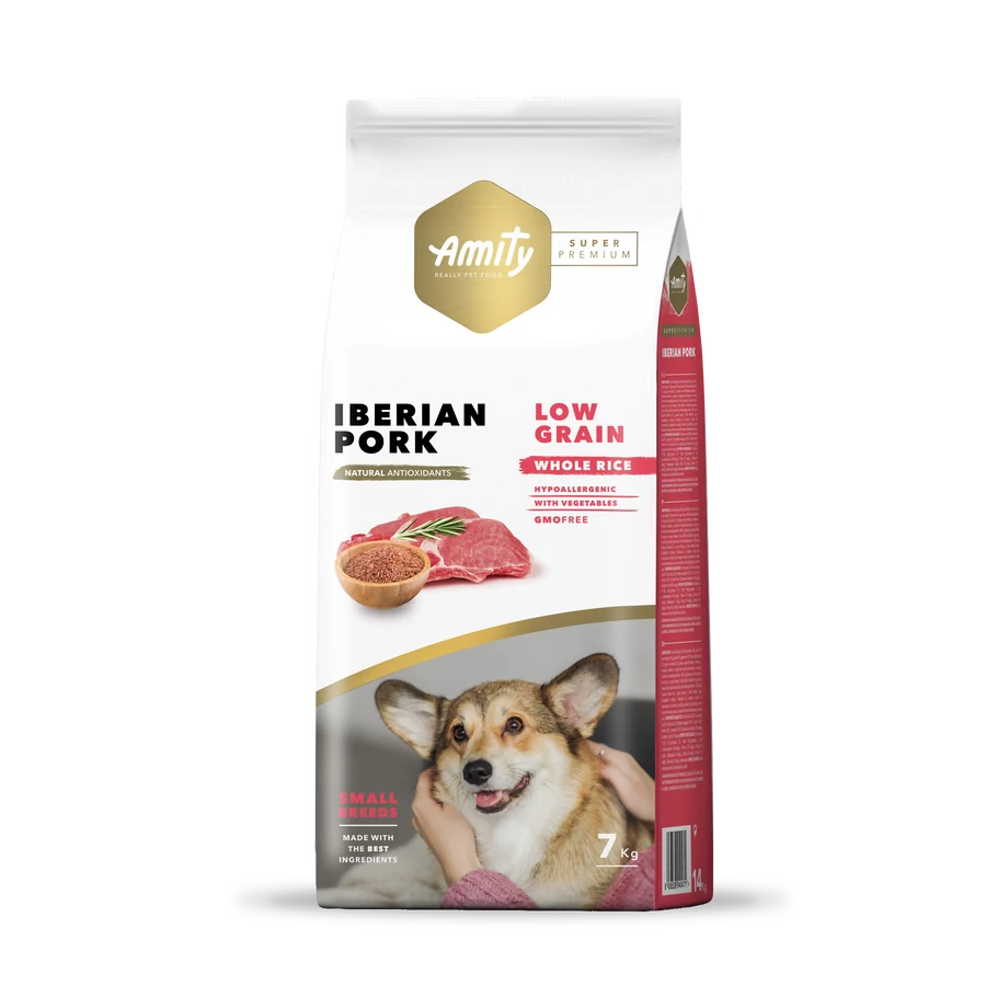 | Amity Hypoallergen Mini Adults Iberian Pork 7 kg kutyatáp - Kistestű kutyáknak készült eledel, ibériai sertéshúsban és barna rizsben gazdag, különböző természetes összetevőkkel, amelyek fokozzák a termék ízletességét. | |