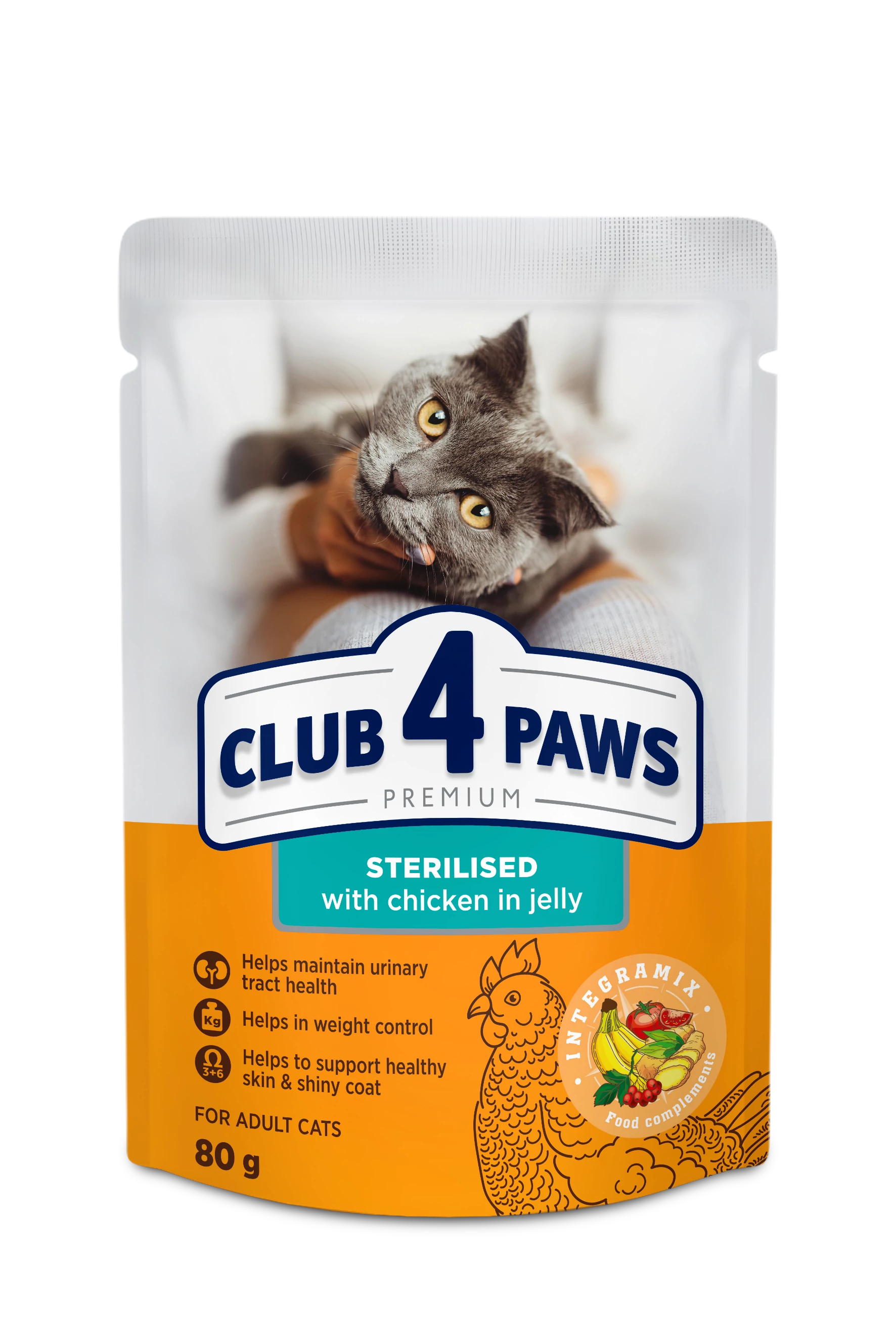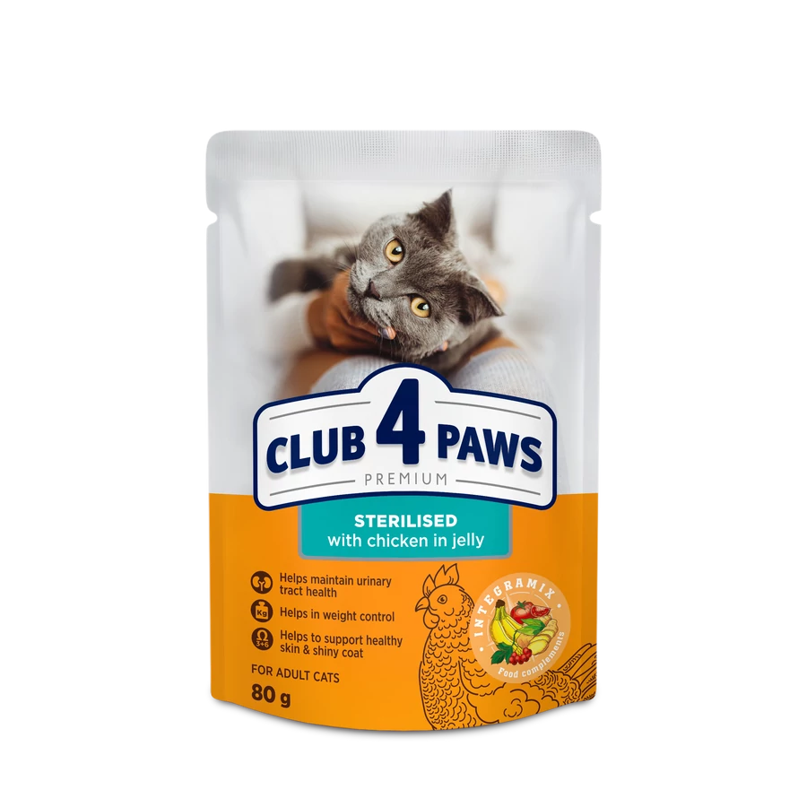 CLUB 4 PAWS Premium Sterilizált Macskáknak Csirke Zselében Nedves Macskaeledel 80 g