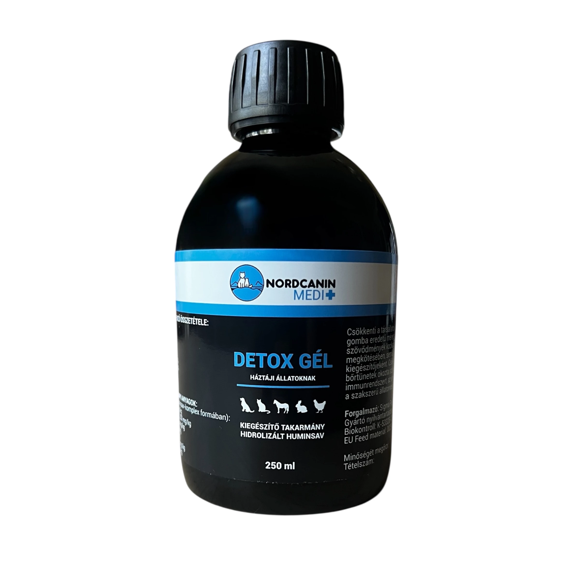 | A Nordcanin Medi Detox Gél a népszerű hidrolizált huminsav folyékony változata azoknak a gazdiknak, akik folyadékokat könnyebben adagolnak a kedvenceiknek. Kiemelkedő fulvosav tartalmának és a folyadékformulának köszönhetően természetes megoldást kínál a háziállatok allergiás és emésztési panaszainak enyhítésére, méregtelenítésre és az immunrendszer támogatására. Csökkenti a társállatok mérgezései (pl.: vegyszerek, növényi-, állati-, penész és gomba eredetű méreganyagok, nehézfémek, baktérium-toxinok) okozta szövődmények kockázatát. 10x hatékonyabb a szervezetbe került méreganyagok megkötésében, semlegesítésében és eltávolításában, mint az orvosi szén. | |